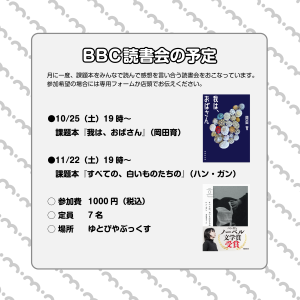 次回以降のBBC読書会 予定はこちら。 お気軽にご参加ください。
