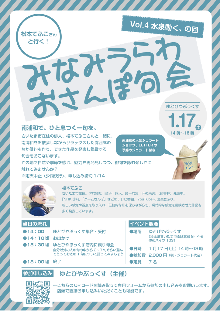 南浦和をぶらついてから季節のジェラートを食べつつおこなわれるカジュアルな句会です。